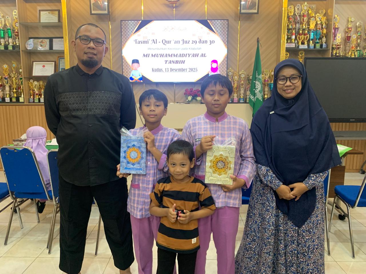 Kudus, 13 Desember 2025 – MI Muhammadiyah Al Tanbih sukses menggelar kegiatan Tasmi’ Al-Qur’an juz 29 dan 30 pada Jum’at-Sabtu, 12-13 Desember 2025, di ruang Jenderal Soedirman. Kegiatan ini diikuti oleh siswa MI Muhammadiyah Al Tanbih dengan penuh semangat dan khidmat. Peserta tasmi’ termuda merupakan siswa kelas 2A, Earlyta Assyfa Salsabila yang dapat menyelesaikan tasmi’ juz 30 sekali duduk dengan predikat mumtaz. Adapula Isa Anandya Abdullah siswa kelas 5B yang telah menyelesaikan tasmi’ juz 29 sekali duduk setelah di tahun ajaran 2024/2025 lalu mengikuti kegiatan tasmi’ juz 30 sekali duduk.