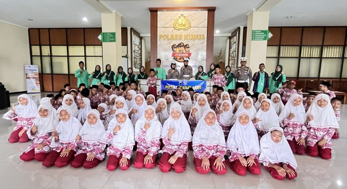 Kudus, 15 Oktober 2025 — Sebanyak 90 siswa kelas 4 hingga 6 MI Muhammadiyah Undaan mengikuti kegiatan Outing Class bertema “Goes to Polres Kudus: Room Tour dan Pengenalan Rambu Lalu Lintas” pada Selasa (15/10/2025) di Markas Polres Kudus.