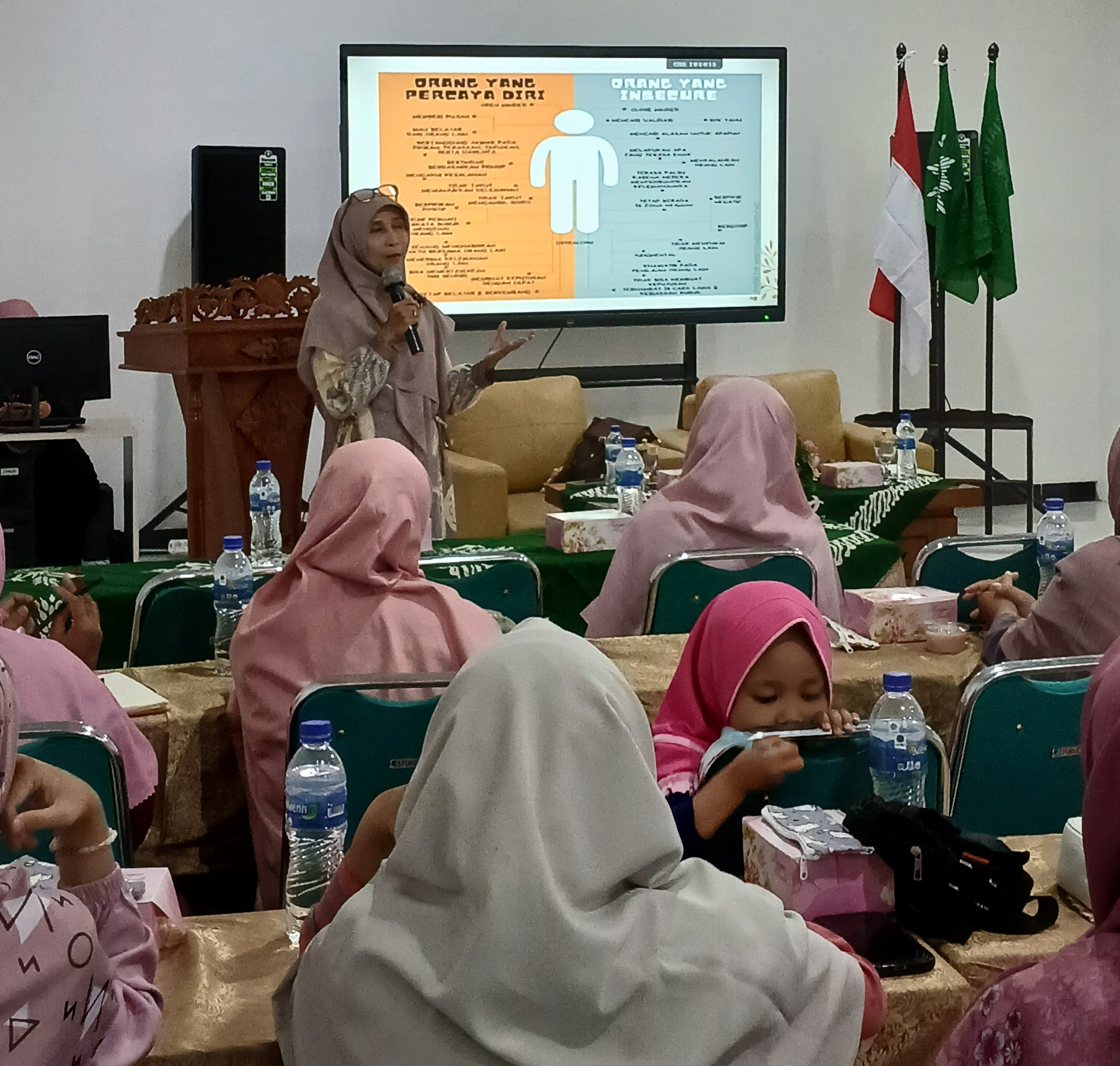 Narasumber pertama, Dr. Anny Rosiana Masithoh, Ns., M.Kep.J., Ph.D., dosen Universitas Muhammadiyah Kudus, menyampaikan materi bertajuk “Kepribadian Muslimah: Membangun Mental dan Soft Skill Wanita Muslimah”. Ia menjelaskan bahwa perempuan dengan kesehatan mental yang baik mampu mengelola emosi, menghadapi tekanan hidup, bersikap realistis terhadap kemampuan diri, membangun relasi yang sehat, serta menjalani pola hidup seimbang. Selain itu, perempuan yang sehat mental akan lebih percaya diri, produktif, mandiri secara emosional, dan berani mencoba hal-hal baru.Lebih lanjut, Dr. Anny menegaskan bahwa kesehatan mental memiliki keterkaitan erat dengan kesehatan finansial. Perempuan yang stabil secara mental akan lebih siap mengelola keuangan, memiliki tabungan, investasi, serta sumber penghasilan yang tidak sepenuhnya bergantung pada orang lain.