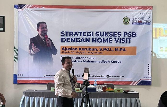 Kudus, 15 Oktober 2025 — Pondok Pesantren Muhammadiyah Kudus menggelar seminar intern dengan tema “Strategi Sukses PSB Home Visit” pada Rabu (15/10/2025). Kegiatan ini diikuti oleh seluruh ustadz dan ustadzah Pondok Pesantren Muhammadiyah Kudus dengan jumlah peserta mencapai 72 orang.