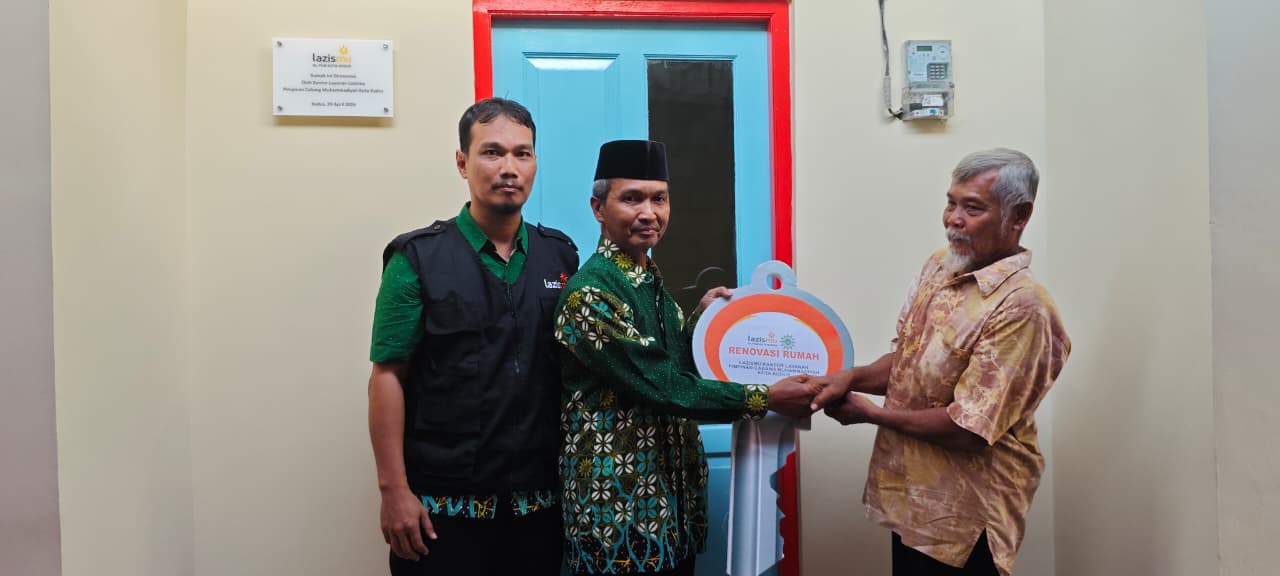 Kudus, 29 April 2026 — Kantor Layanan Lazismu Pimpinan Cabang Muhammadiyah (PCM) Kota Kudus melaksanakan kegiatan serah terima renovasi rumah milik Bapak Ahmad di Kelurahan Purwosari, Rabu (29/4/2026) pukul 16.00 WIB hingga selesai. Renovasi ini dilakukan sebagai bentuk kepedulian terhadap warga yang terdampak bencana banjir, yang sebelumnya mengakibatkan tembok belakang rumah roboh.