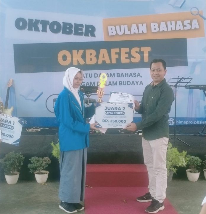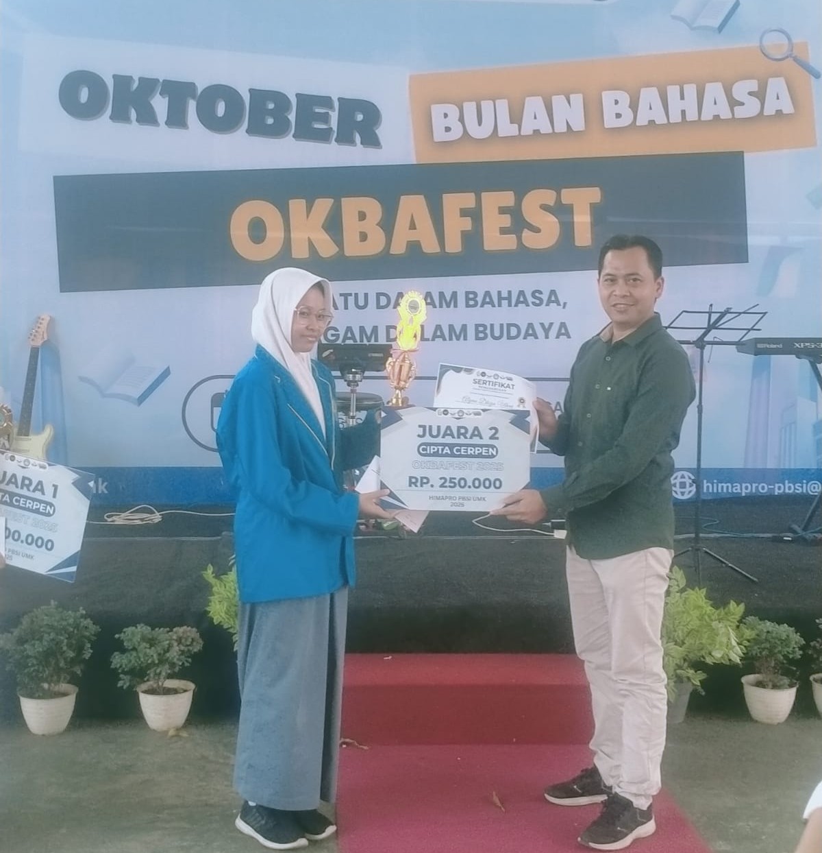 Kudus, 16 Oktober 2025 — Prestasi membanggakan kembali diraih oleh salah satu siswi SMA Muhammadiyah Kudus, Alya Dhiya Ulhaq, yang berhasil meraih Juara 2 dalam Lomba Cipta Cerpen pada ajang OKBAFEST Universitas Muria Kudus (UMK), Kamis (16/10/2025).