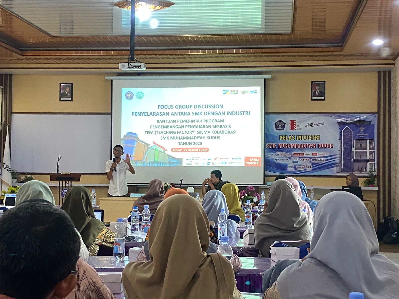 Kudus, Sabtu 25 Oktober 2025 — SMK Muhammadiyah Kudus menggelar kegiatan Focus Group Discussion (FGD) Penyelarasan antara SMK dengan Industri Mitra sebagai bagian dari Program Bantuan Pemerintah untuk Pengembangan Pengajaran Berbasis Kolaborasi Tahun 2025.