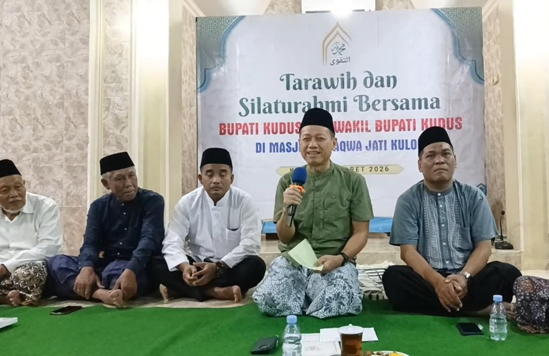 Kudus – Kegiatan Tarawih dan Silaturahmi bersama Bupati dan Wakil Kudus berlangsung dengan khidmat pada Senin, 16 Maret 2026 di Masjid At-Taqwa, Jati Kulon. Sekitar 400 jamaah turut hadir mengikuti rangkaian kegiatan yang diawali dengan shalat Isya, Tarawih, dan Witir.