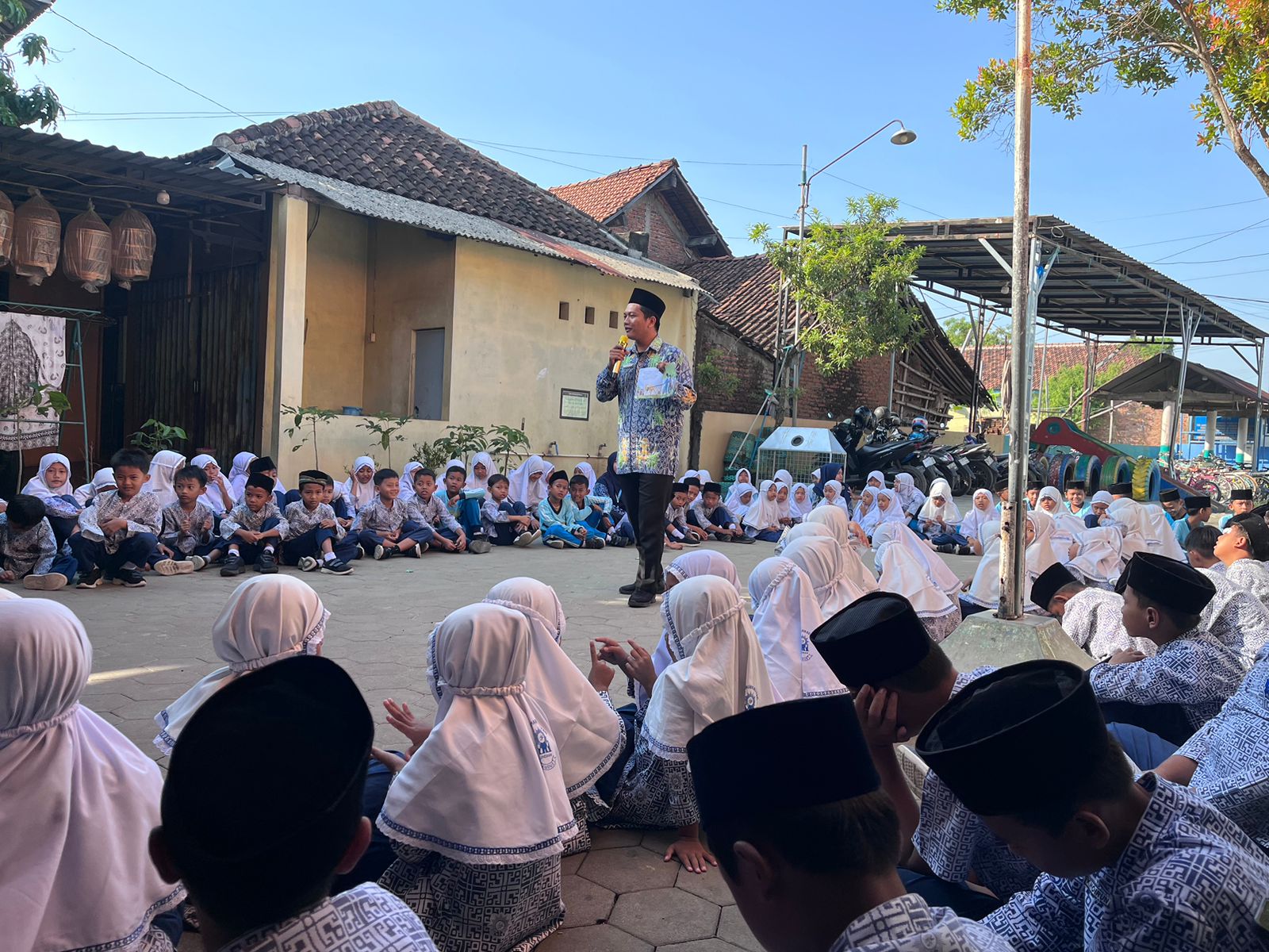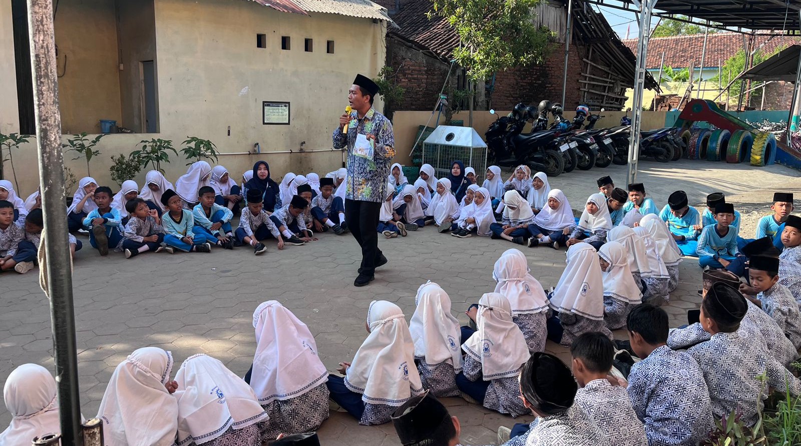 Dalam kegiatan tersebut, guru bertugas sebagai Read Aloud. Read Aloud adalah kegiatan membacakan teks dengan suara keras dan jelas agar dapat didengar oleh orang lain. Tujuannya bukan hanya untuk melatih kemampuan membaca, tetapi juga untuk meningkatkan pemahaman, pengucapan, intonasi, dan kepercayaan diri dalam berbicara di depan umum. dengan menyampaikan berbagai materi menarik, seperti cerita aqidah akhlak, kisah nabi, cerita islami, hingga sains untuk anak SD. Melalui pendekatan bercerita yang interaktif, diharapkan siswa dapat menikmati proses belajar sekaligus menumbuhkan kecintaan terhadap literasi.
